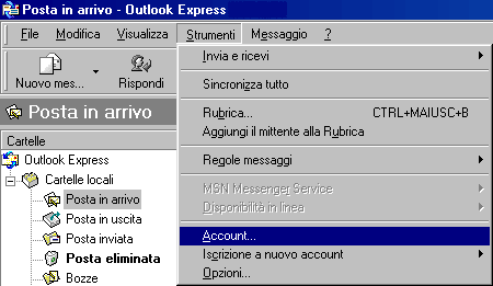 Account dal menù Strumenti: