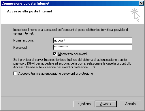 creazione del nuovo account di posta.